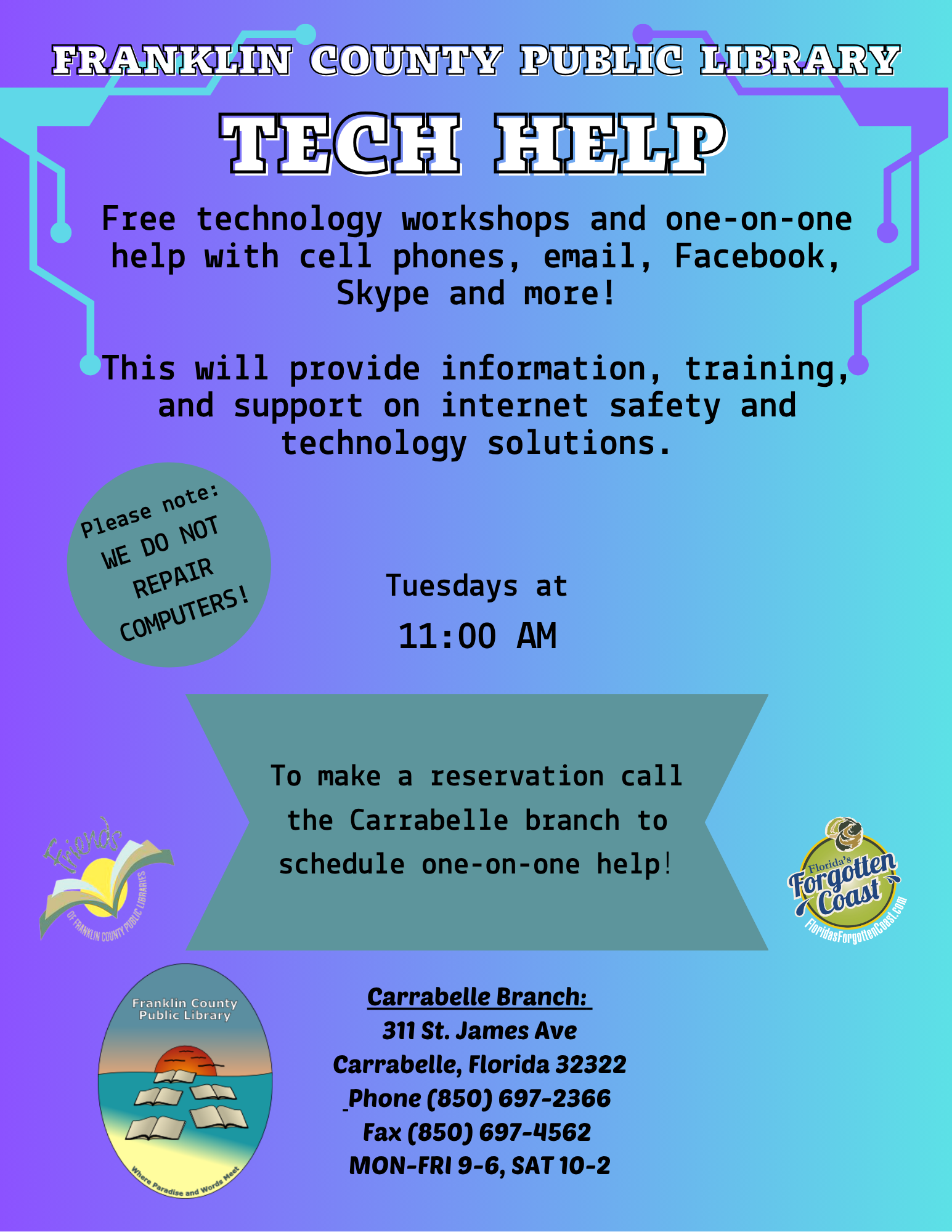 Tech Help - Tuesday, February 10 at 11:00 AM - Carrabelle Branch