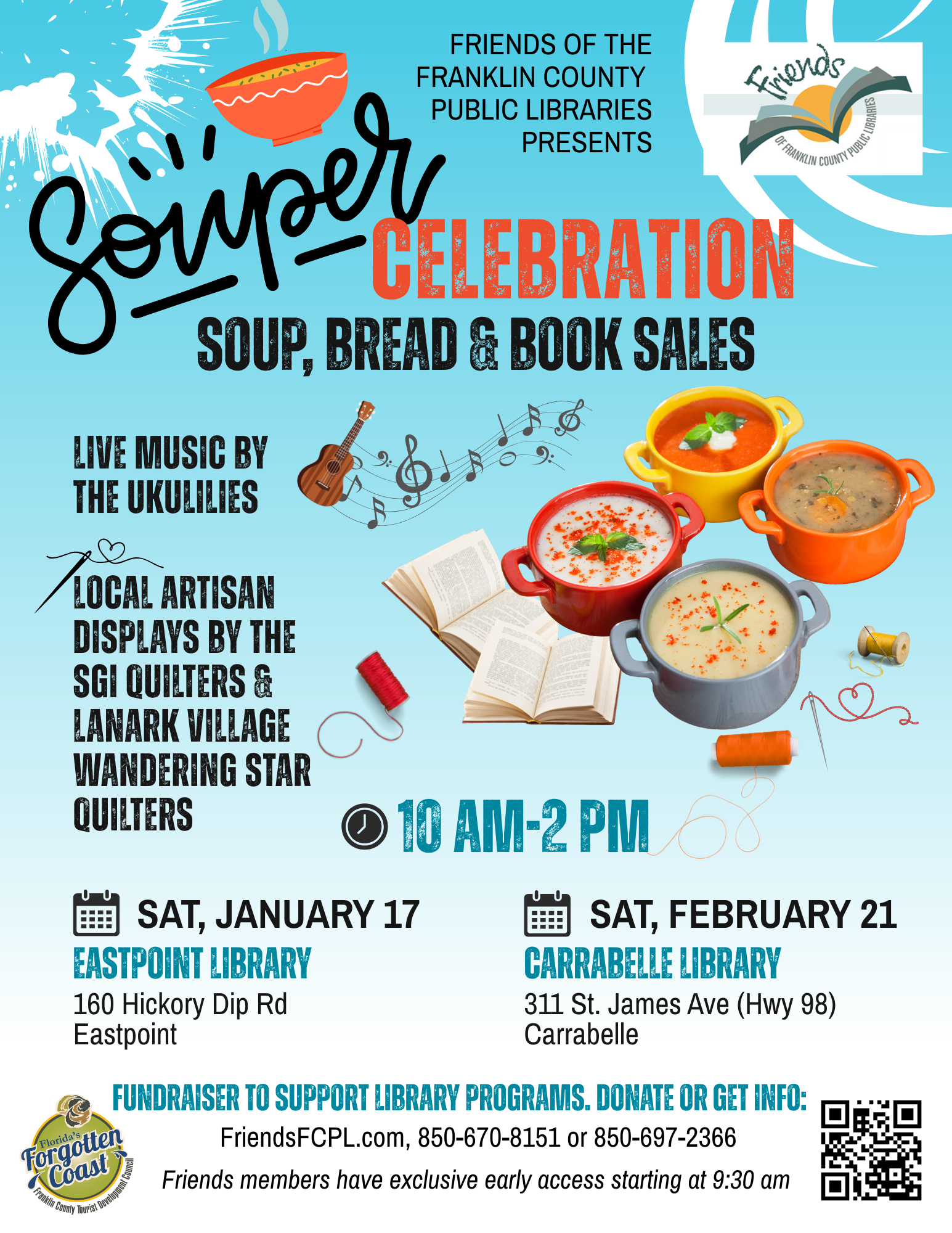 Souper Celebration: Soup, Bread & Book Sale - Saturday, February 21 @ 10:00 AM - 2:00 PM - Carrabelle Branch