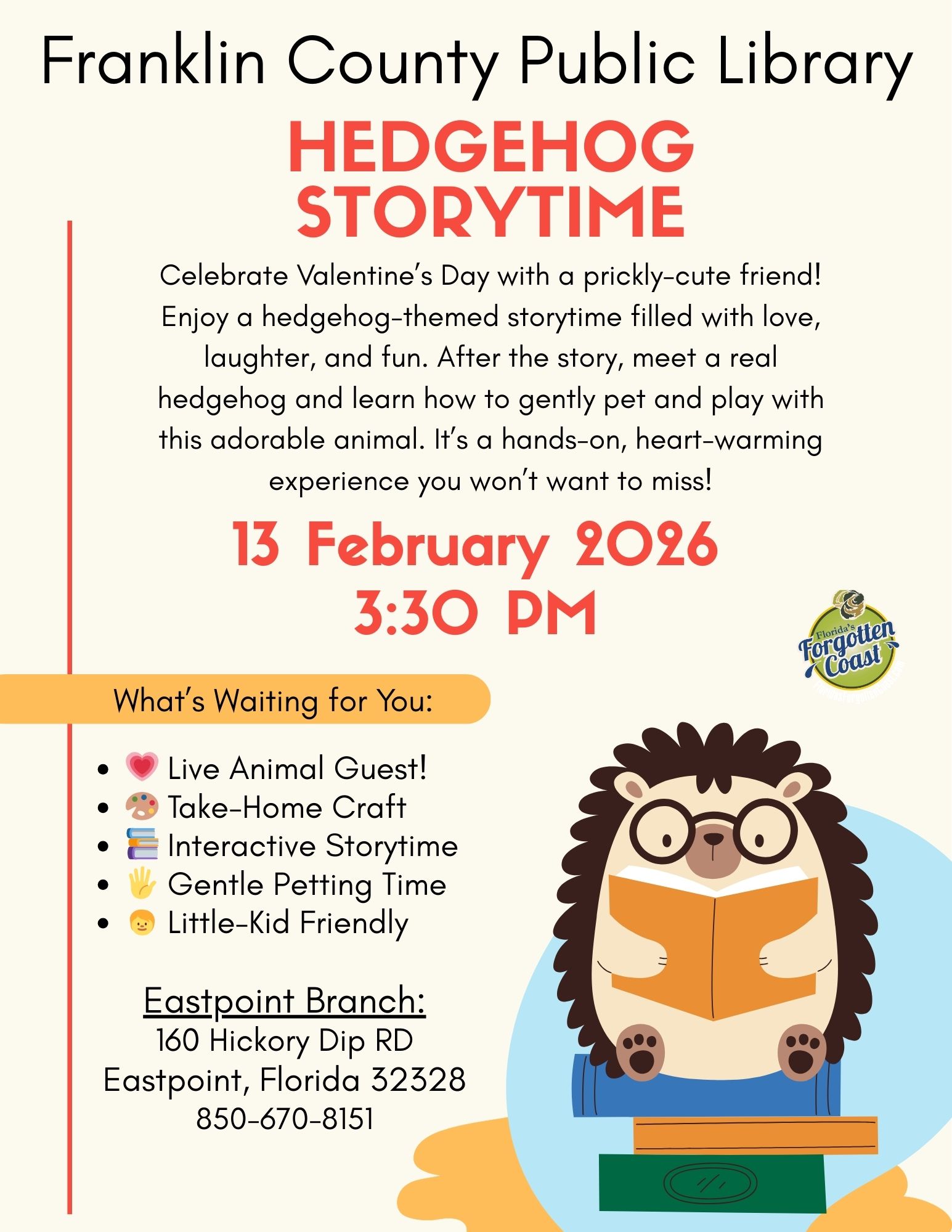 Hedgehog Valentine Storytime - Friday, February 13 at 3:30 PM - Eastpoint Branch