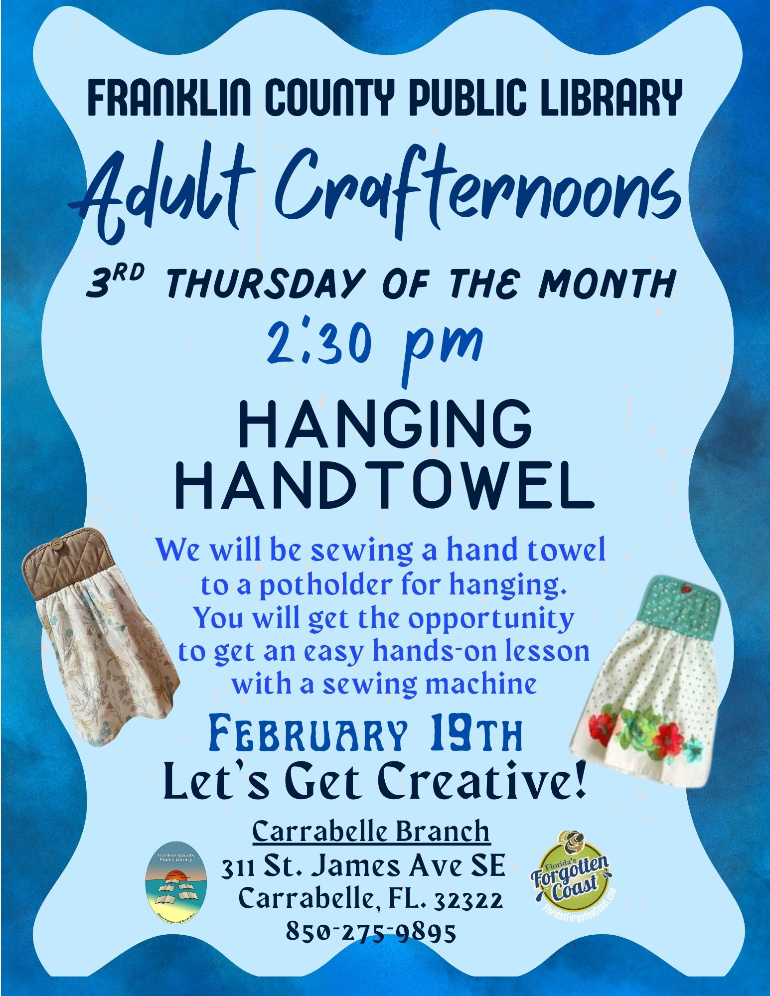 Adult Crafternoon: Hanging Hand Towel - Thursday, February 19 @ 2:30 PM - Carrabelle Branch